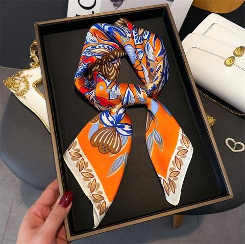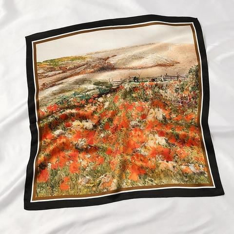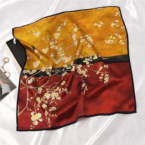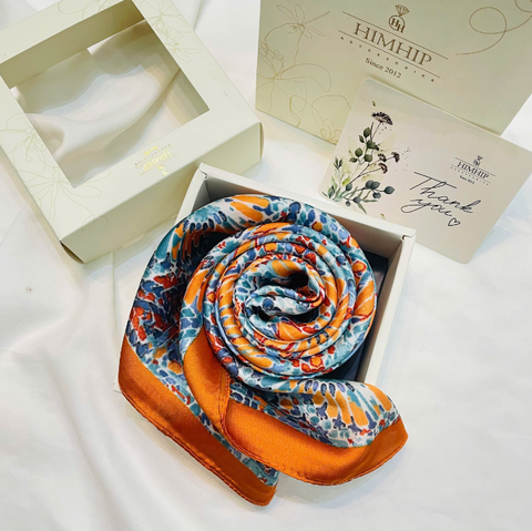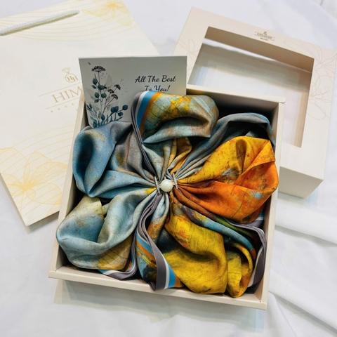 Mỗi chiếc khăn là một bức tranh thu nhỏ – nơi sắc vàng của lá phong, sắc cam rực rỡ của hoàng hôn hay ánh nâu trầm mặc của đất trời được thể hiện qua từng sợi lụa mềm mại. Tông màu được lựa chọn kỹ lưỡng, dễ dàng phối hợp cùng trang phục thu – từ chiếc áo len mỏng đến blazer cổ điển.